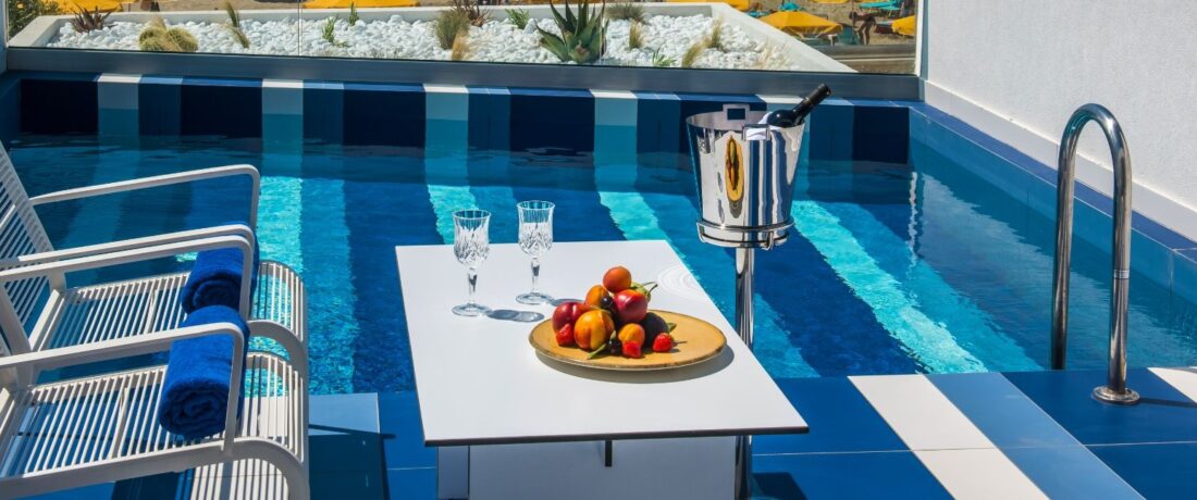 The elegant design of this newly built Suite with its chic spacious environment and the outdoor private pool is one step further for guests that prefer quality and modern conveniences in their luxurious private place.