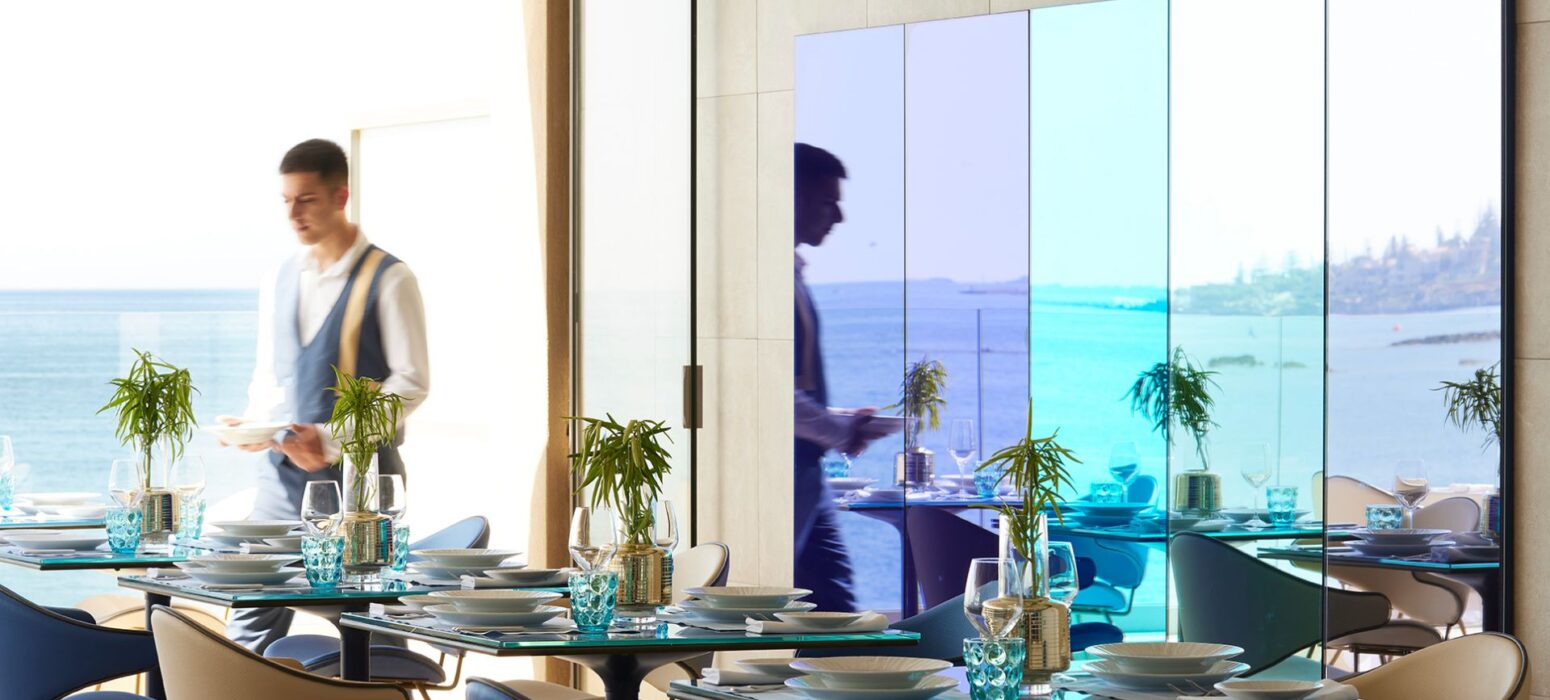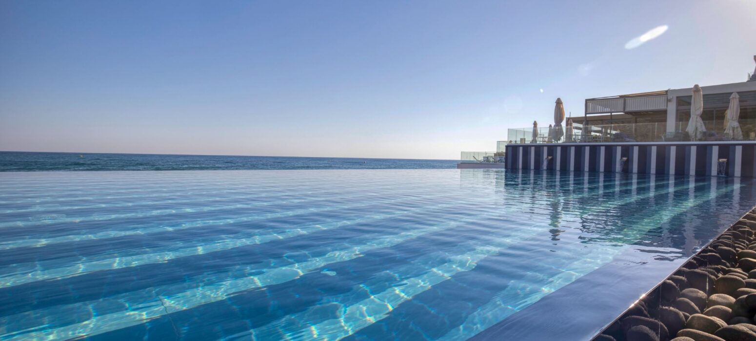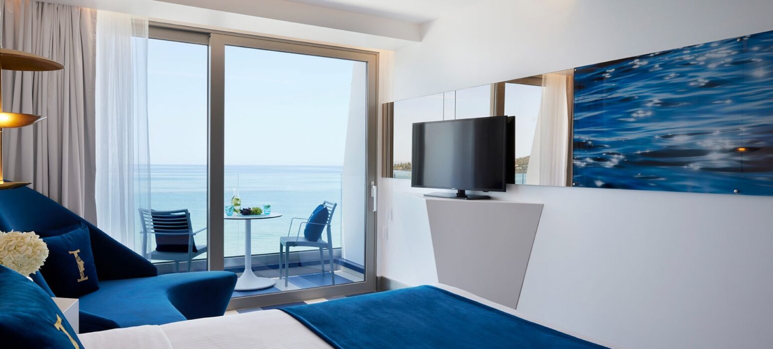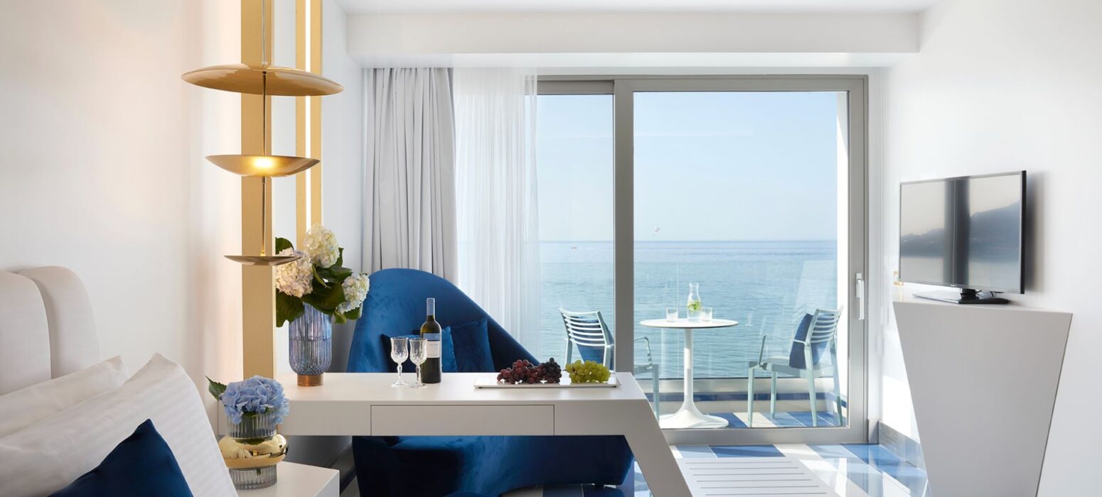 With its private beach, infinity pool overlooking the Mediterranean, and breathtaking views from the restaurant, lobby, and pools, the hotel offers a truly unique setting.