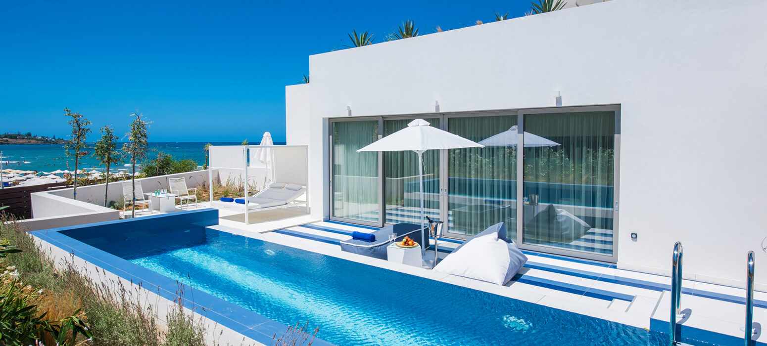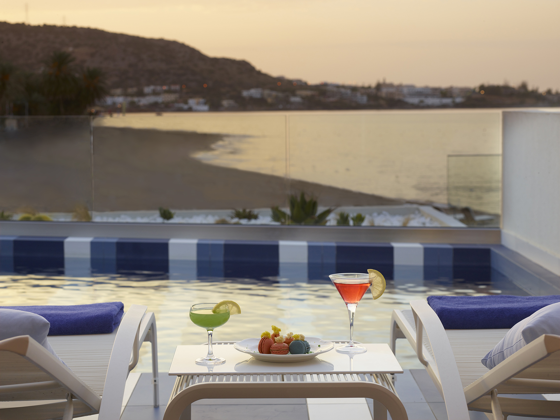 The suites stand out for their space and refinement, while some rooms and suites feature a private pool, perfect for enjoying moments of intimacy with stunning sea views.